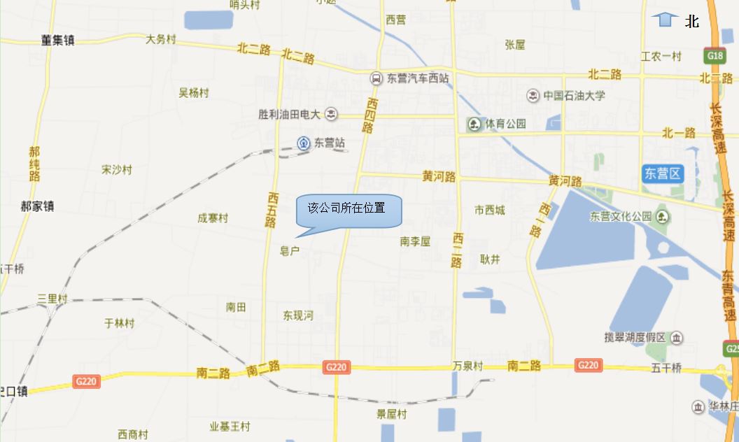 東營市金興乙炔有限責任公司位於東營市東營區南一路西首北側,東距西四路約1km。公司廠區西側為一機械加工廠;北側50m為廣蒲溝,與廣蒲溝之間為空地;東側50m處為東營區紅十字會印刷廠;南鄰南一路,南一路以南為居民區。安全距離符合。 |