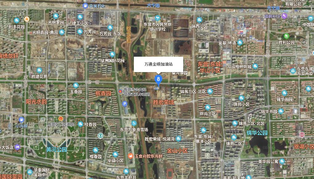 該加油中心位於東營市東營區北一路538號。該加油中心東側隔空地為居民樓,東麵有10kV的南北向架空電力線,東南側設有一台變壓器;西麵為一雜物間與一間活動板房,再往西有一台抽油機、一台原油儲罐以及一處信號塔,西南側有一架空電力線,南側為空地,北側為北一路。 |