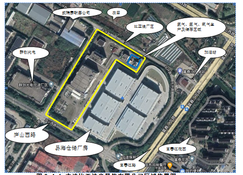 大宗氣站布置在寧波比亞迪半導體有限公司廠區內,交通便利。氣站按照工藝流程布置。建、構築物及室外設備、設施之間的防火距離符合《工業企業總平麵設計規範》GB 50187-2012、《建築設計防火規範》GB50016-2014(2018版)、《深度冷凍法生產氧氣及相關氣體安全技術規程》GB16912-2008、《氫氣站設計規範》GB50177-2005等的要求。詳細距離見報告5.2.1章節。 |
