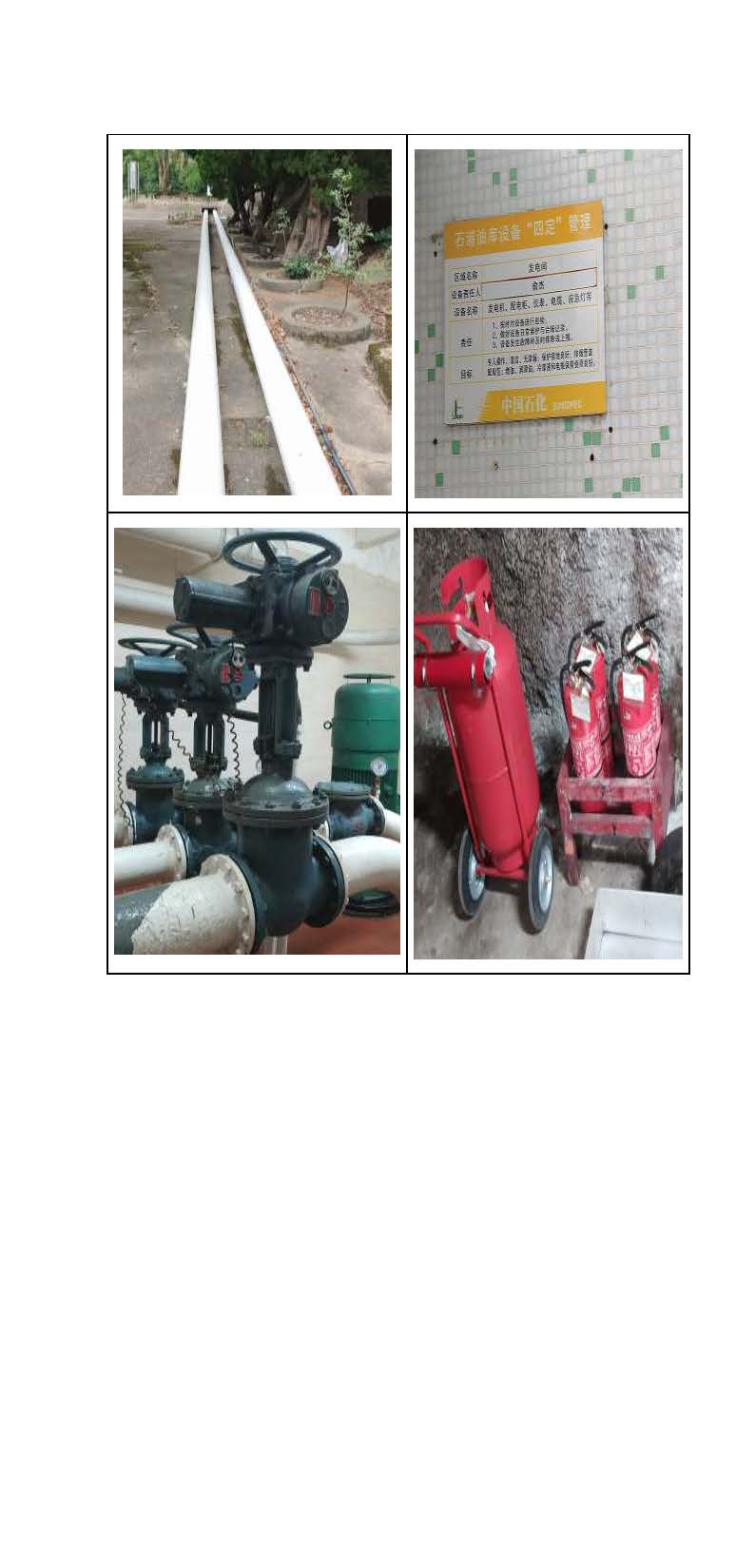 石浦油庫結合生產運行現狀,建立健全了安全生產管理標準化體係。就現階段日常管理情況:企業製定有安全風險研判、安全風險隱患排查、巡回檢查等管理製度,並定期進行檢查。結合石浦油庫特點和要求,不斷完善和健全各類安全管理製度和安全操作規程;積極聯係有資質單位進行各類檢測和評估工作(如防雷防靜電檢測、消防檢測、特種設備檢驗檢測、防爆電氣檢測等),確保滿足有關法律、法規及標準要求;按有關要求配置應急救援器材和安全保護器具;按各作業崗位要求配備勞動防護用品; |