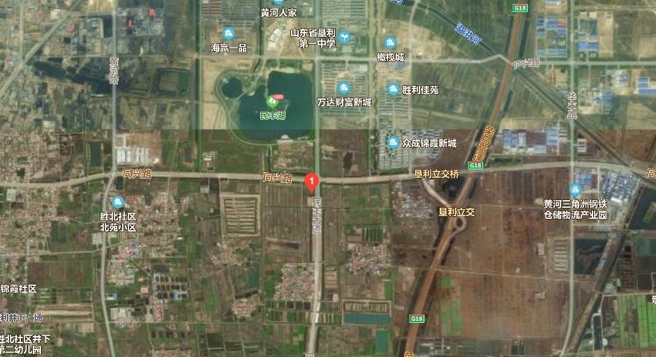 該加油站位於東營市墾利區廬山路與同興路交彙處。該加油站東側為廬山路(主幹路),隔路為空地;北側為220kV電力線路(杆高45m);西側為空地;南側為空地。 |