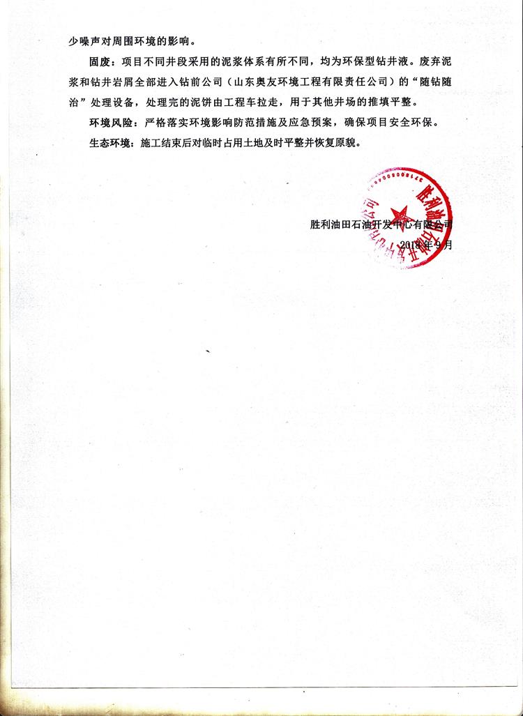 勝利油田石油開發中心有限公司王莊油田411塊沙三段零散完善工程日期公開